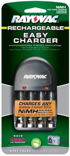Rayovac's Everyday-Use 4 Position Battery Charger will recharge any NiMH and NiCD battery brand and size (AA and AAA). One Year Limited Manufacturer's Warranty. Rayovac rechargeable batteries provide long-lasting performance over and over again. Rayovac is a trusted brand of Spectrum Brands Holdings, Inc., a top manufacturer of consumer batteries in the United States and Latin America. Spectrum Brands Holdings, Inc. is a global consumer products company and a leading supplier of batteries, shaving and grooming products, personal care products, small household appliances, specialty pet supplies, lawn & garden and home pest control products, personal insect repellents and portable lighting.